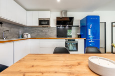 Deux chambres avec lits de 160x 200cm et 140 x 190cm un séjour avec un coin salon, une cuisine ouverte toute équipée (réfrégirateur / congélateur, lave-vaisselle, four, four micro-ondes, cafetière, bouilloire et grille-pain), ainsi que l'essentiel des équipements (lave-linge, aspirateur, planche-à-repasser et fer, étendoir, sèche-cheveux).